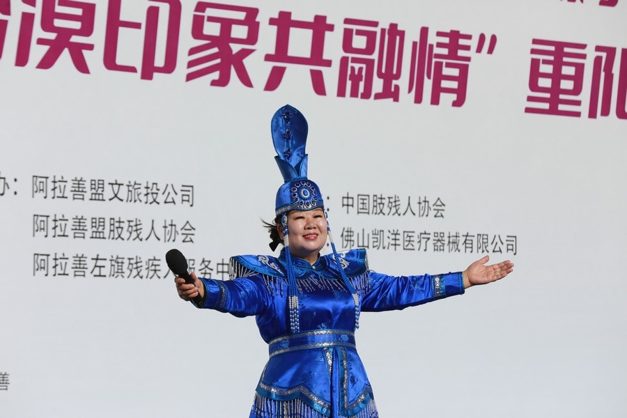 北疆新聞巴彥浩特10月11日電(記者 張楊)10月10日—11日,第三屆“沙漠印象”(2024)輪椅挑戰(zhàn)者大會(huì)暨首屆“愛老助殘 沙漠印象共融情”重陽節(jié)活動(dòng),在內(nèi)蒙古阿拉善夢(mèng)想沙漠公園燃情開幕。著名女中音歌唱家索倫嘎傾情助力,在開幕式和頒獎(jiǎng)儀式上,分別演唱了《蒙古馬》和《守望相助》,受到現(xiàn)場(chǎng)觀眾的熱情掌聲。