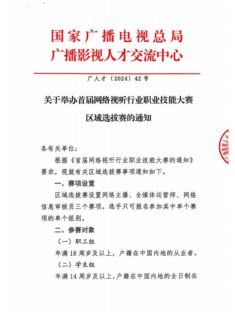 大賽設(shè)置網(wǎng)絡(luò)主播、全媒體運(yùn)營(yíng)師、網(wǎng)絡(luò)信息審核員三個(gè)賽項(xiàng),分為區(qū)域選拔賽、全國(guó)決賽和頒獎(jiǎng)三個(gè)階段,從事相關(guān)工作的企(事)業(yè)單位職工、自由職業(yè)者及相關(guān)專(zhuān)業(yè)全日制在籍學(xué)生均可報(bào)名參加。