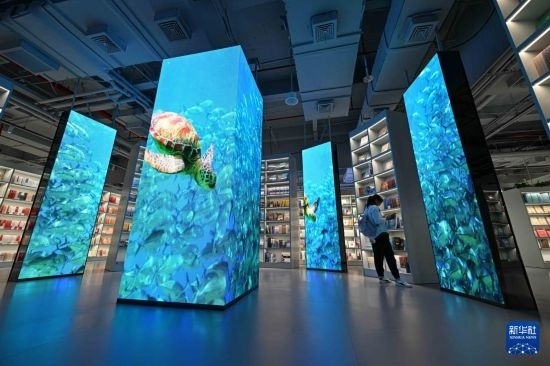 位于??诘男氯A書店海島書香店結(jié)合海南特色,營造熱帶海洋島嶼環(huán)境藝術(shù)空間,成為集閱購、研學(xué)、親子、文創(chuàng)陳展和藝術(shù)交流等功能于一體的開放場所。同時,該店連線各類圖書數(shù)據(jù)庫,為讀者提供海量數(shù)字閱讀產(chǎn)品,滿足讀者文化消費需求。