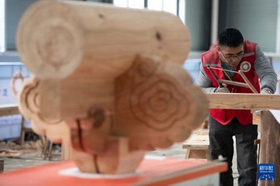 3月6日,參賽選手在參加木作文物修復(fù)師項目比賽。