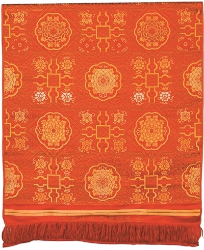 清代紅地如意牡丹紋天華錦。