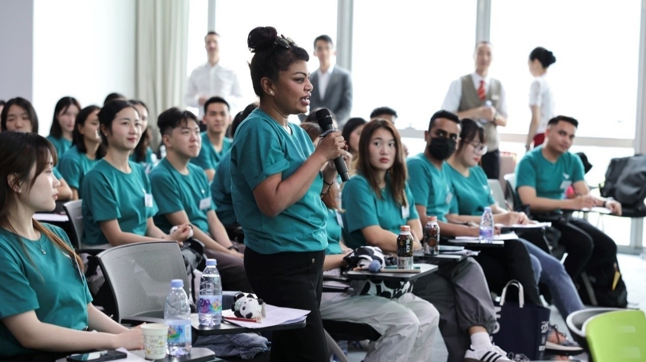 移步至沉浸式展演區(qū),情景演繹與互動交流交織,不同時代青年在勞動崗位上的奮斗場景躍然眼前,師生們不再是旁觀者,而是歷史的參與者,真切體悟到奮斗者的熱血與執(zhí)著。