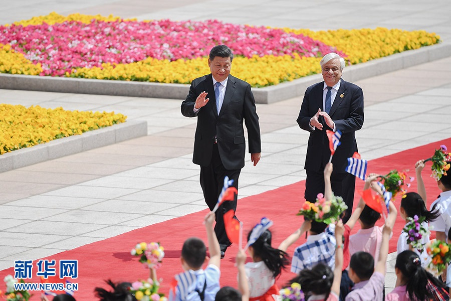 國家主席習近平14日在人民大會堂同希臘總統(tǒng)帕夫洛普洛斯舉行會談。