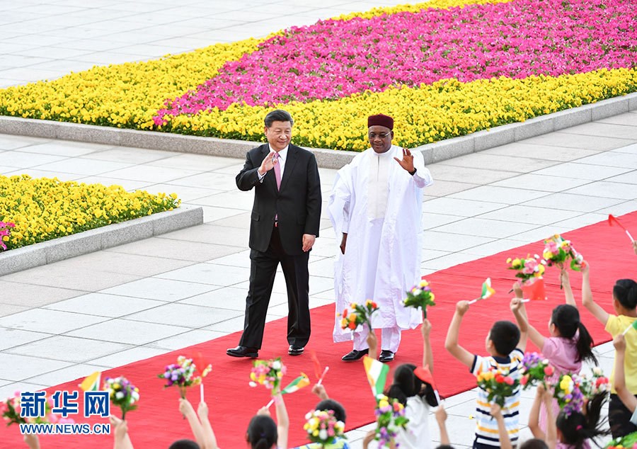 5月28日,國家主席習(xí)近平在北京人民大會(huì)堂同尼日爾總統(tǒng)伊素福舉行會(huì)談。這是會(huì)談前,習(xí)近平在人民大會(huì)堂東門外廣場(chǎng)為伊素福舉行歡迎儀式。