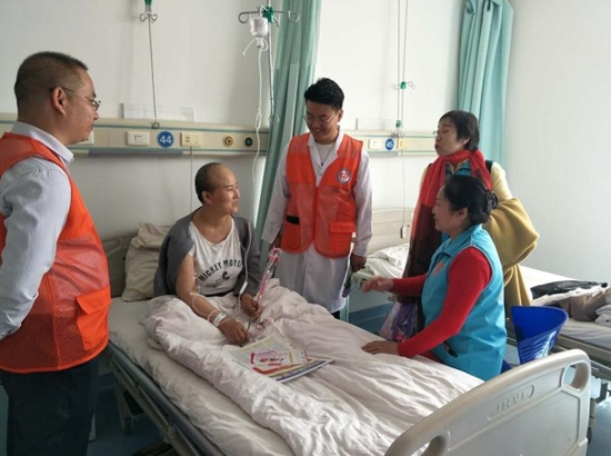 每年舉辦關(guān)愛白血病患兒活動(dòng),通過與內(nèi)蒙古紅十字會等組織合作,深入兒科病房為每名白血病患兒送上2000元的慰問金及價(jià)值500元的慰問品。不僅如此,醫(yī)務(wù)社工辦公室還結(jié)合臨床與病友的需求開展溫馨關(guān)愛活動(dòng)。如:走進(jìn)放療科、腫瘤內(nèi)科病房,設(shè)立流動(dòng)圖書車;開展患者陪護(hù)服務(wù),減少患者對醫(yī)院的恐懼、孤獨(dú)感;向有需要的患者及家屬介紹醫(yī)保咨詢、慈善救助、遺體捐獻(xiàn)和家屬住宿、生活服務(wù)等有關(guān)途徑,同時(shí)注意發(fā)現(xiàn)患者對醫(yī)療服務(wù)的隱性需求,及時(shí)向醫(yī)護(hù)人員反映。