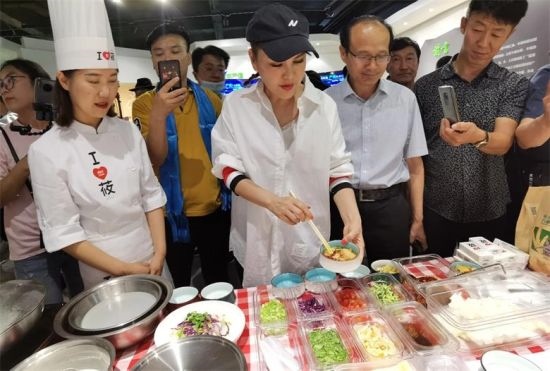 在“天賦河套”總部基地,烏蘭圖雅對(duì)“天賦河套”優(yōu)質(zhì)農(nóng)產(chǎn)的12家企業(yè)產(chǎn)品及國(guó)家認(rèn)證的地理標(biāo)志性農(nóng)畜產(chǎn)品進(jìn)行了重點(diǎn)介紹,并現(xiàn)場(chǎng)直播了面塑制作、河套面粉現(xiàn)場(chǎng)拉拉面、面筋制作等,同時(shí)與河套爬山調(diào)、烏拉特民歌等非遺項(xiàng)目傳承人及烏蘭牧騎隊(duì)員現(xiàn)場(chǎng)互動(dòng)。