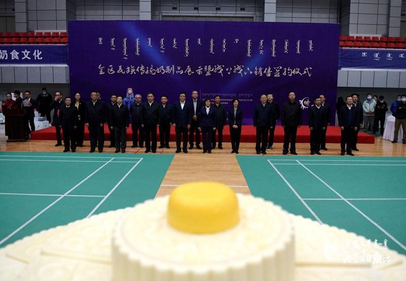 自治區(qū)黨委副書記、自治區(qū)主席布小林,國家市場監(jiān)督管理總局副局長孫梅君,自治區(qū)副主席歐陽曉暉出席活動,到鑲黃旗民族傳統(tǒng)奶制品產(chǎn)業(yè)園、檢測室以及部分民族傳統(tǒng)奶制品企業(yè)調(diào)研,參觀了各盟市民族傳統(tǒng)奶制品產(chǎn)品展示。與會領(lǐng)導(dǎo)們還共同見證了鑲黃旗乳香飄乳業(yè)公司制作的禮儀奶酪盤獲得“大世界基尼斯之最”紀錄認證。