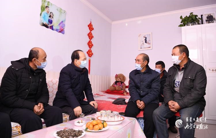 屋外白雪皚皚,屋內(nèi)爐火熊熊。石泰峰首先來到庫倫圖村脫貧戶連縻拴家,與老倆口親切交談,深入了解飲水、住房、健康等生產(chǎn)生活狀況,與他們一起細算收入賬,詢問他們對幫扶工作的滿意度,鼓勵他們堅定信心,在政策幫扶下勤勞致富。隨后,石泰峰驅(qū)車來到六道溝村,在脫貧戶孟忠忠家,與孟忠忠、胡金柱、王鎖林、韓向林、韓金龍等貧困群眾圍坐在一起嘮起家常,詳細了解“兩不愁三保障”及飲水安全、產(chǎn)業(yè)發(fā)展等情況。得知他們雖然都是因病、因殘致貧,但生產(chǎn)生活都有保障,而且不等不靠、自我發(fā)展的心勁兒很足,石泰峰說,脫貧路上一個都不能少、一戶都不能落,今年是脫貧攻堅戰(zhàn)最后一年,也是全面建成小康社會收官之年,看到你們不但脫了貧,而且信心滿滿,很有志氣和骨氣,我很放心。幸福是奮斗出來的,希望大家在政策幫扶下繼續(xù)奮斗,共同努力脫貧致富過上好日子。石泰峰要求當(dāng)?shù)馗刹恳虻刂埔?、精?zhǔn)施策,接續(xù)推進全面脫貧與鄉(xiāng)村振興有效銜接。