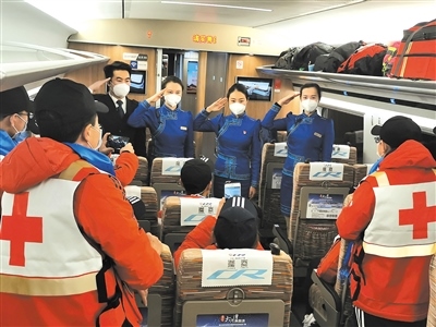 作為連通全國的運(yùn)輸動(dòng)脈,在完成常規(guī)運(yùn)輸任務(wù)的基礎(chǔ)上,高鐵列車還承擔(dān)起了運(yùn)送醫(yī)務(wù)人員、醫(yī)療用品和保障物資的特別任務(wù)。內(nèi)蒙古援鄂醫(yī)療隊(duì)員兩批次乘坐G2438次列車從北京中轉(zhuǎn)赴武漢;五批次乘坐“草原動(dòng)車”由鄂爾多斯回到呼和浩特。“送英雄出征,接英雄回家”,七次運(yùn)輸任務(wù),高鐵車隊(duì)以最高禮遇和精心的服務(wù),贏得醫(yī)療隊(duì)員們的紛紛好評(píng)?!爸x謝你們,出發(fā)時(shí)為我們送行,歸來時(shí)為我們唱起凱旋之歌?!贬t(yī)療隊(duì)隊(duì)員李紅娟緊緊握住列車長(zhǎng)張雨的手說。