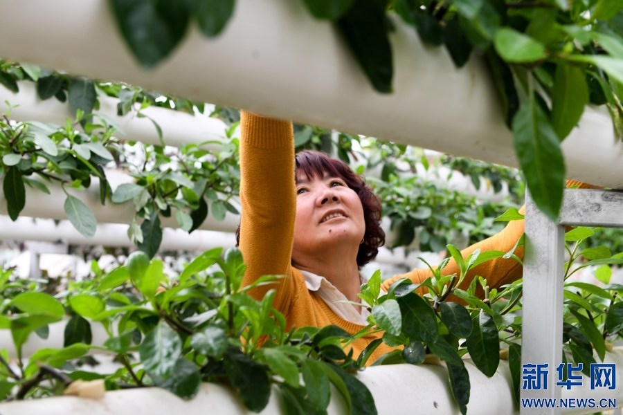 農(nóng)民在內(nèi)蒙古自治區(qū)巴彥淖爾市五原縣隆興昌鎮(zhèn)的一個(gè)現(xiàn)代農(nóng)業(yè)試驗(yàn)示范區(qū)內(nèi)采摘無土栽培的蔬菜。新華社記者 劉磊 攝