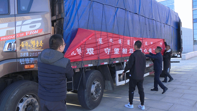 21日下午,額濟(jì)納旗東南1000公里外的鄂爾多斯市康巴什區(qū),2輛滿載消毒液、防護(hù)服、N95口罩、酒精等防疫物資,以及大米、白面、豬肉等糧食物資的大卡車,緊急馳向額濟(jì)納?! ?/p>