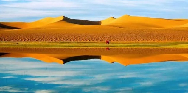 巴丹吉林沙漠年降水量不足40毫米,但是沙漠中的湖泊竟然多達(dá)100多個(gè)。高聳入云的沙山,神秘莫測(cè)的鳴沙,靜謐的湖泊、濕地,構(gòu)成了巴丹吉林沙漠獨(dú)特的迷人景觀,于2005年被《中國(guó)國(guó)家地理》雜志評(píng)為中國(guó)最美麗的沙漠,每年吸引了上萬(wàn)名國(guó)內(nèi)外游客前來(lái)觀光。