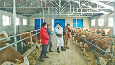 興安盟科技特派員王強(右二)對養(yǎng)殖戶進(jìn)行現(xiàn)場指導(dǎo)。