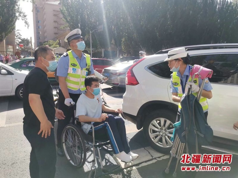 現(xiàn)場(chǎng)最讓感動(dòng)的是,一位腳扭傷的考生,在兩名交警的幫助下坐上輪椅進(jìn)入考場(chǎng)?!坝辛怂麄兊膸椭?,減少了我們的焦慮,心情輕松了很多,而且今天早早就來(lái)到了考場(chǎng)?!笨忌议L(zhǎng)介紹,昨天看考場(chǎng)時(shí),交警同志得知孩子的腳扭傷后,今天特意趕來(lái)護(hù)送學(xué)生進(jìn)入考場(chǎng)。