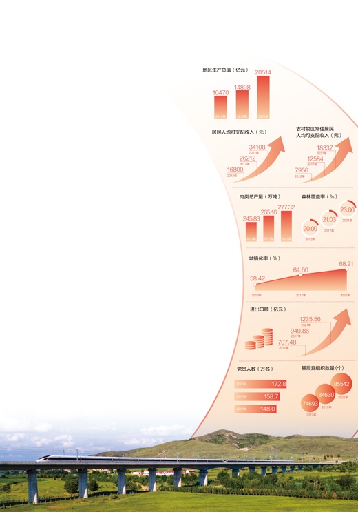 內(nèi)蒙古自治區(qū)統(tǒng)計(jì)局?jǐn)?shù)據(jù)顯示,2012年到2021年的十年間,內(nèi)蒙古地區(qū)生產(chǎn)總值翻了近一番,從剛剛邁入萬億元門檻,到跨過2萬億元大關(guān)。目前,內(nèi)蒙古非煤產(chǎn)業(yè)占規(guī)模以上工業(yè)增加值比重達(dá)到近60%,經(jīng)濟(jì)發(fā)展正由資源依賴型向創(chuàng)新驅(qū)動(dòng)型轉(zhuǎn)變、由粗放高碳型向綠色低碳型轉(zhuǎn)變、由分散低效型向集約高效型轉(zhuǎn)變。今日的內(nèi)蒙古正全力以赴把結(jié)構(gòu)調(diào)過來、功能轉(zhuǎn)過來、質(zhì)量提上來,各類新產(chǎn)業(yè)、新技術(shù)、新業(yè)態(tài)蓬勃發(fā)展的同時(shí),能源、礦產(chǎn)、種植、畜牧等行業(yè)也正實(shí)現(xiàn)華麗蛻變。