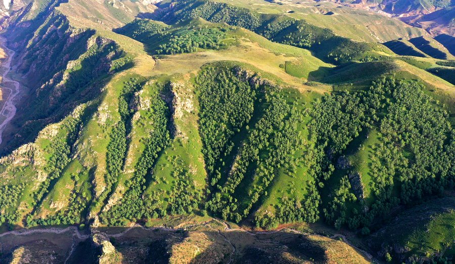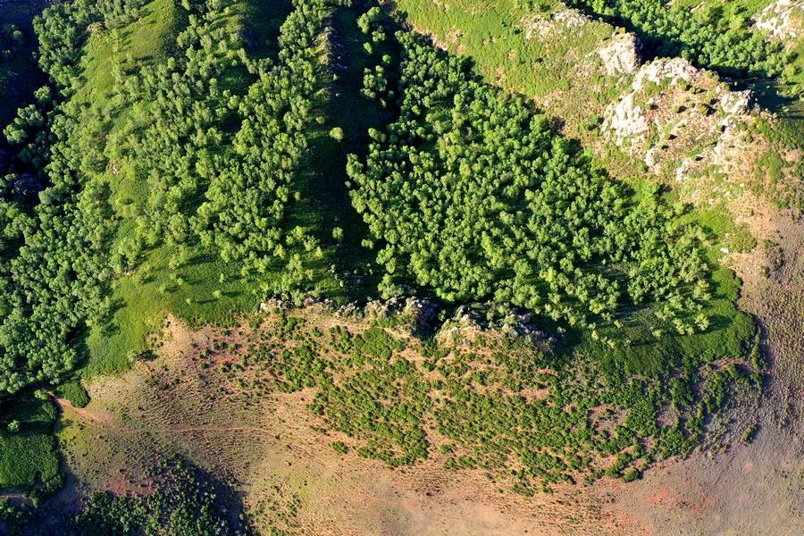 盛夏時節(jié),位于呼和浩特市回民區(qū)境內(nèi)的井爾梁,滿目蒼翠,從山頂往下望,山巒疊嶂,草甸如茵,溝壑縱橫,如詩如畫。 井爾梁最高海拔為2110米,井爾梁高山草原即位于井爾梁、摩天嶺地段,占地約17055畝,是呼和浩特大青山生態(tài)旅游帶重要節(jié)點之一。