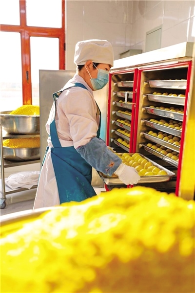 同樣,在該蘇木吉日花嘎查黨支部領(lǐng)辦的吉日花烏蘭香食品廠內(nèi),工人們也正忙著把蒸制好的黏豆包進(jìn)行冷凍、真空包裝,準(zhǔn)備發(fā)往各地。