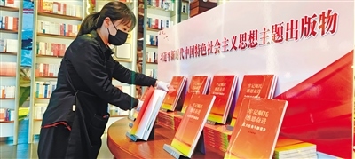 5月4日,內(nèi)蒙古新華書(shū)店工作人員整理擺放《牢記囑托感恩奮進(jìn)——五大任務(wù)干部讀本》。牟野攝