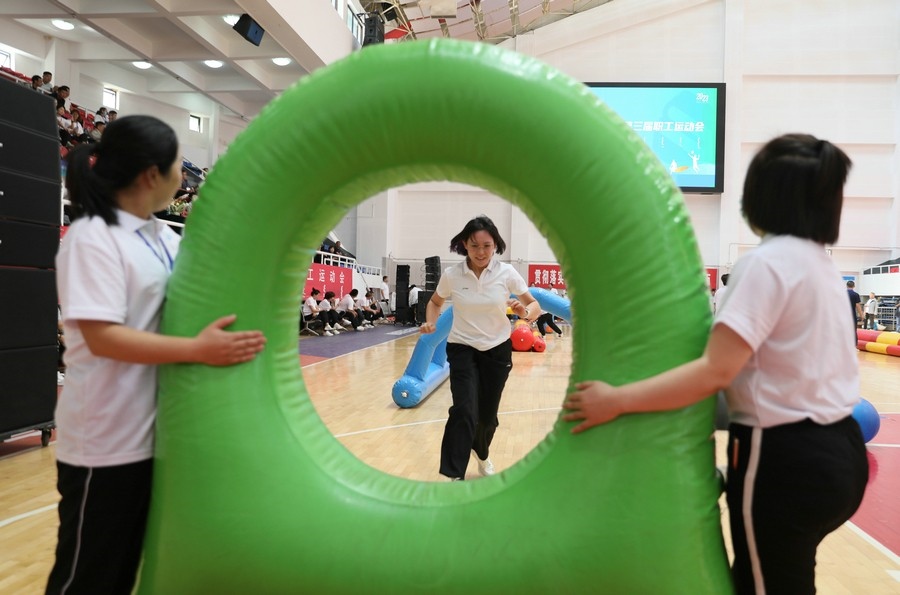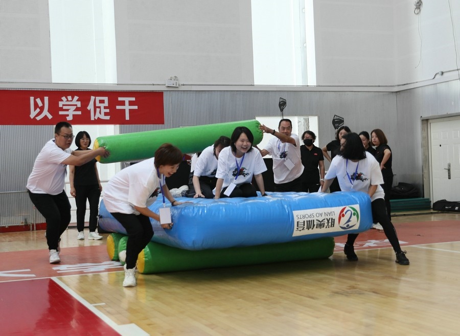 在隨后進(jìn)行的趣味運(yùn)動(dòng)會(huì)中,依次進(jìn)行了“陸地冰壺”“龜兔賽跑”“漢諾塔”等比賽項(xiàng)目。而在此前一天,羽毛球等項(xiàng)目也已開(kāi)賽。賽場(chǎng)上,運(yùn)動(dòng)員們團(tuán)結(jié)一心,奮力拼搏。觀眾席上,“最強(qiáng)氣氛組”組成強(qiáng)大的啦啦隊(duì),為參賽選手們吶喊助威、加油鼓勁,共同凝聚團(tuán)隊(duì)的精神,一起分享比賽的快樂(lè)。