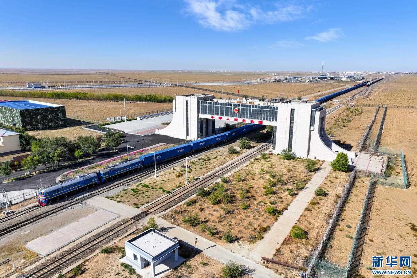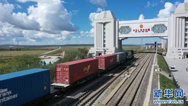 中歐班列駛出滿洲里國(guó)門(mén)。新華網(wǎng)發(fā) (李新軍 攝)
