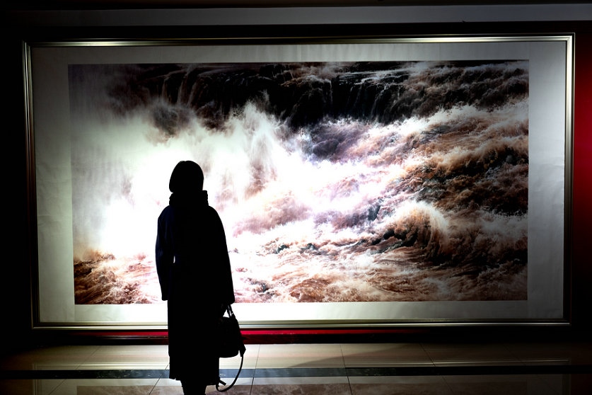 在展覽館的正中央,一幅氣勢如虹的黃河作品格外耀眼,吸引著觀展者的駐足欣賞。