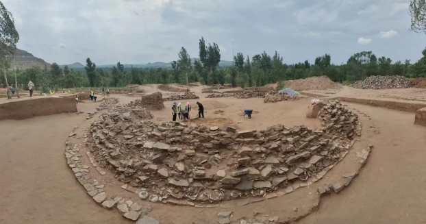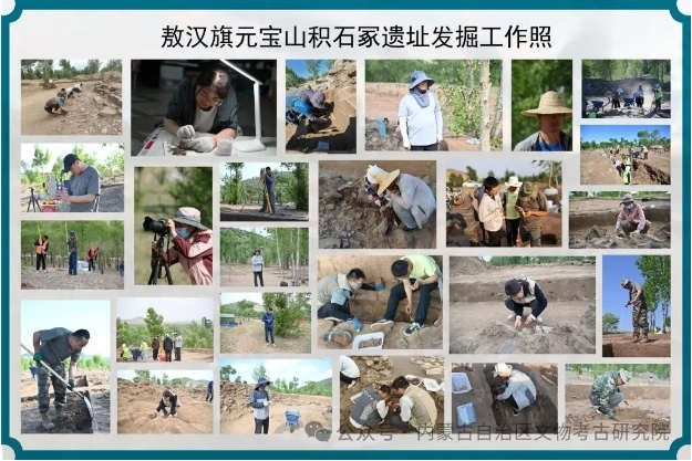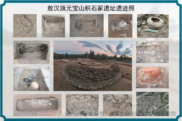 2023年11月,位于赤峰市敖漢旗下洼鎮(zhèn)元寶山積石冢被盜,當?shù)匚奈锕芾聿块T上報后,2024年初內(nèi)蒙古自治區(qū)文物考古研究院經(jīng)自治區(qū)文物局批準,以搶救性考古發(fā)掘向國家文物局申請并得以批準。4月底,組隊對該地點及周邊開展調(diào)查并進行了勘探。5月正式啟動發(fā)掘,截止目前已明確該地點為一處集墓葬建筑與祭祀建筑一體的紅山文化遺存。也是目前所知內(nèi)蒙古自治區(qū)唯一的一處南方北圓、南壇北冢的紅山文化晚期建筑遺存。