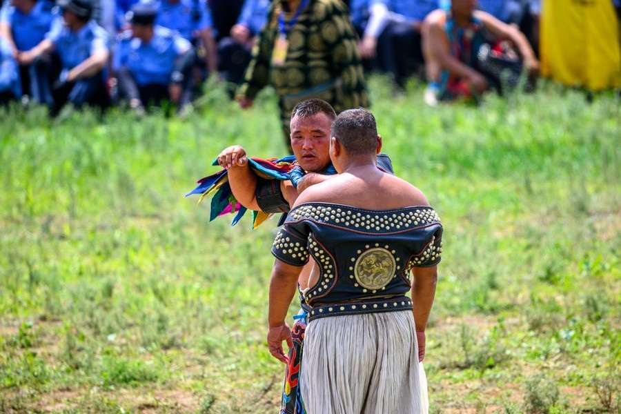 那達慕上搏克比賽瞬間