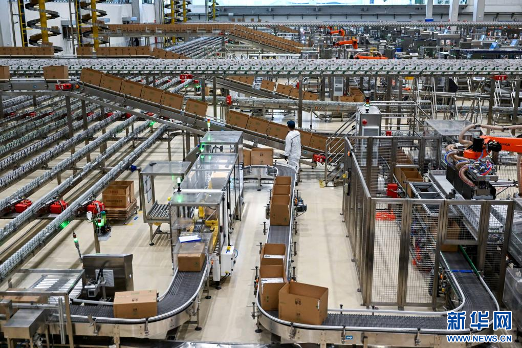 這是1月9日拍攝的呼和浩特市伊利現(xiàn)代智慧健康谷液態(tài)奶全球智造標(biāo)桿基地生產(chǎn)車(chē)間。
