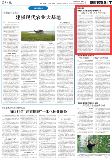 2025年3月29日,《農(nóng)民日?qǐng)?bào)》第7版刊發(fā)題為《呼倫貝爾農(nóng)墾巴彥農(nóng)牧場(chǎng)分公司實(shí)驗(yàn)育良種 選出“生力軍”》的文章,報(bào)道了近年來(lái),巴彥農(nóng)牧場(chǎng)分公司始終堅(jiān)持“科技興農(nóng)”戰(zhàn)略,不斷加大在農(nóng)業(yè)科研方面的投入。農(nóng)業(yè)科技園區(qū)實(shí)驗(yàn)室作為技術(shù)創(chuàng)新與應(yīng)用的前沿陣地,承擔(dān)著多項(xiàng)重要的科研任務(wù),在種子培育、土壤改良、病蟲(chóng)害防治等多個(gè)領(lǐng)域開(kāi)展了深入研究與實(shí)踐。