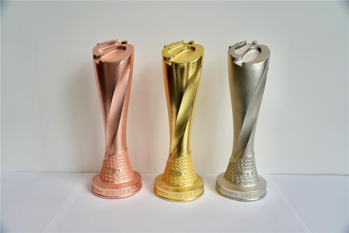 獎杯頂部為會徽“奮進”,以傾斜45度的方式呈現(xiàn);外形采用扭轉(zhuǎn)升騰樣式設計,體現(xiàn)了各民族運動員在少數(shù)民族傳統(tǒng)體育運動會賽場上英勇矯健的身姿和拼搏向上的精神。底部為紅山文化彩陶雙旋紋環(huán)繞四周,并鐫刻“2025·赤峰”,既展現(xiàn)中華優(yōu)秀傳統(tǒng)文化,又明確了本屆運動會舉辦地區(qū)及時間,激勵各民族運動員以參加本屆全區(qū)少數(shù)民族傳統(tǒng)體育運動會為榮耀,傳承和弘揚民族傳統(tǒng)體育文化,構筑中華民族共有精神家園,鑄牢中華民族共同體意識。獎杯整體開模澆鑄,鋅合金制作,表面電鍍金、銀、銅顏色。(記者 肖璐)