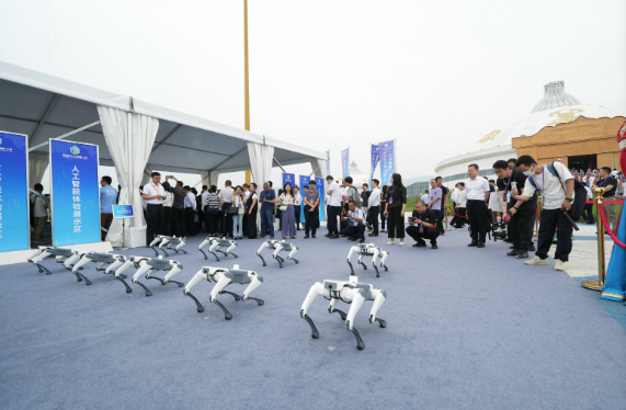 7月12日,2025綠色算力大會(huì)在呼和浩特開(kāi)幕,圖為工作人員通過(guò)鍵盤(pán)操控機(jī)器狗進(jìn)行表演。