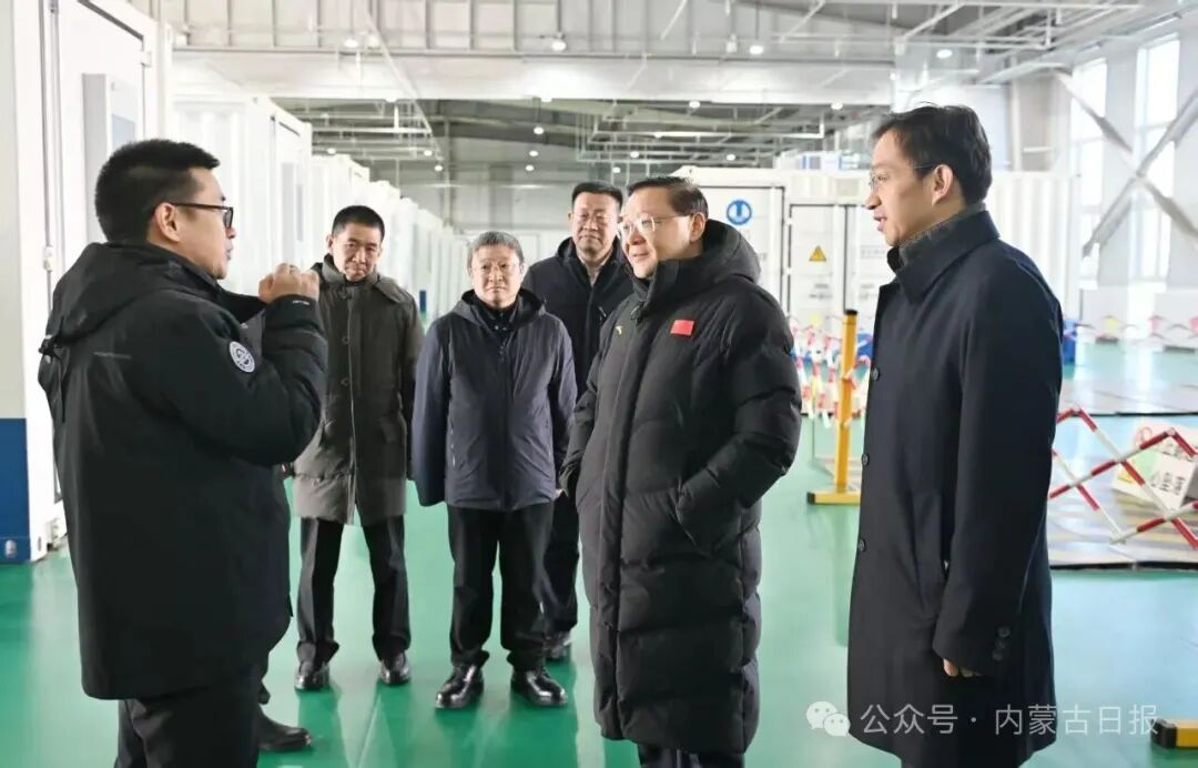 在三峽現(xiàn)代能源創(chuàng)新示范園,王偉中聽取新能源開發(fā)建設(shè)運(yùn)營和“源網(wǎng)荷儲”技術(shù)研發(fā)應(yīng)用等情況介紹。他說,要立足能源本質(zhì)安全,提高新能源開發(fā)水平,大力推進(jìn)多種新型儲能技術(shù)開發(fā)和應(yīng)用示范,推動儲能產(chǎn)業(yè)降本增效,不斷塑強(qiáng)綠色發(fā)展優(yōu)勢。在世紀(jì)互聯(lián)烏蘭察布算力基地,王偉中詳細(xì)了解算力產(chǎn)業(yè)發(fā)展情況,強(qiáng)調(diào)要推動智能算力規(guī)模持續(xù)增長、算力經(jīng)濟(jì)發(fā)展壯大,加快電網(wǎng)數(shù)智化轉(zhuǎn)型,推進(jìn)電力算力協(xié)同發(fā)展。在南大光電(烏蘭察布)有限公司,王偉中察看了高純電子級三氟化氮生產(chǎn)情況,希望企業(yè)持續(xù)加大研發(fā)投入力度,著力破解關(guān)鍵核心技術(shù)“卡脖子”問題,為高水平科技自立自強(qiáng)貢獻(xiàn)力量。