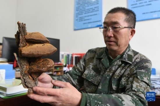 2月20日,在內(nèi)蒙古賀蘭山國家級自然保護(hù)區(qū)管理局,工作人員徐建國展示植物標(biāo)本。