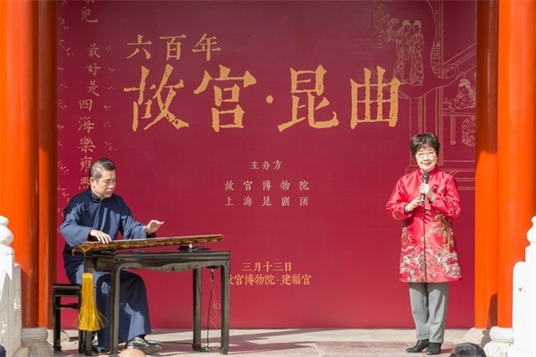 著名昆劇表演藝術(shù)家張靜嫻、古琴演奏家楊致儉共同表演《牡丹亭·尋夢(mèng)》選段。故宮博物院供圖