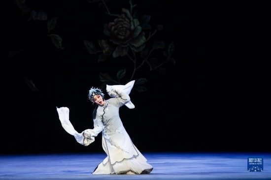 5月15日,演員在舞臺上表演黃梅戲《羅帕記》。