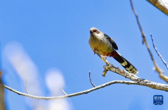 這是在拉薩市城關區(qū)蔡公堂街道次角林村拍攝的灰腹噪鹛(5月14日攝)。