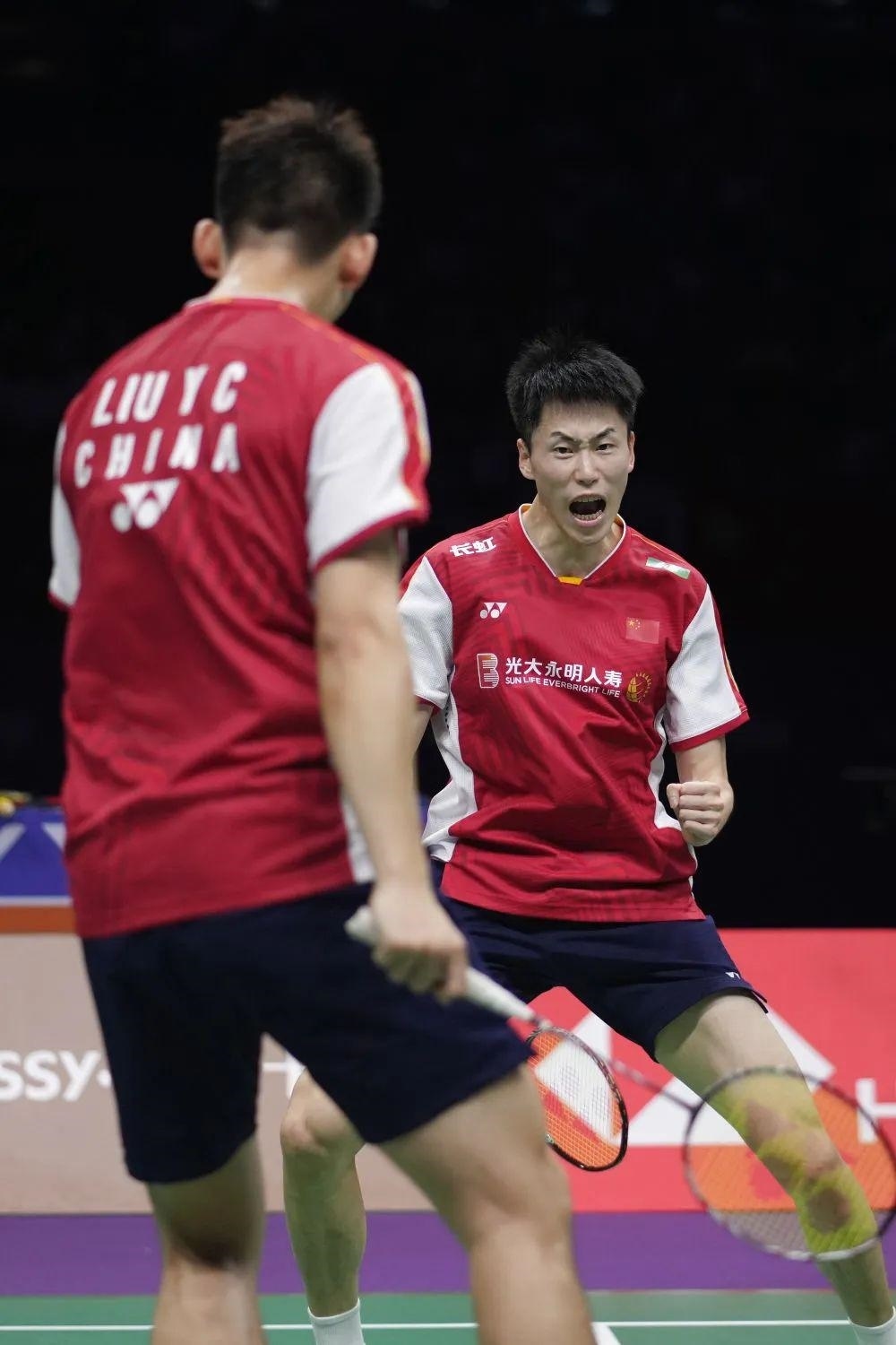 以保木卓朗/小林優(yōu)吾遺憾、懊惱的表情為背景,劉雨辰越過邊界擋板在場內(nèi)狂奔,與場邊的教練擊掌相慶?!澳孟卤荣悾瓿闪宋覀兊娜蝿?wù),沒給男雙丟臉,在主場也沒給球迷們丟臉!”劉雨辰賽后說。
