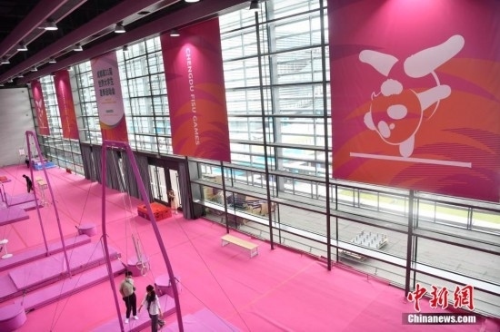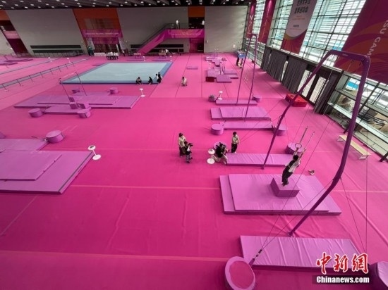 打卡成都大運(yùn)會(huì)里的“粉色系”體操比賽訓(xùn)練場(chǎng)