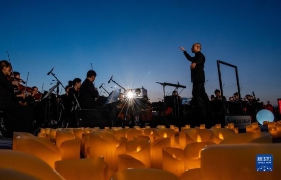 伴著晚霞,第七屆聶耳音樂周昆明分會場開幕式在滇池畔舉行(7月17日攝)。