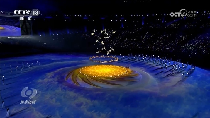 陳維亞:“我們把四川蜀錦概念融入到入場儀式里面,在視頻上繡娘們開始不斷繡著,運動員劃出彩色的線路,寓意著運動員們錦繡前程擺在他們面前。我們要表達的最主要的東西和以往都不一樣,就是青春、陽光、活力、夢想?!?/p>