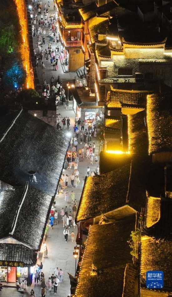 湖南省湘西土家族苗族自治州鳳凰古城持續(xù)推進旅游環(huán)境提質(zhì)升級,規(guī)范旅游市場,完善旅游服務(wù)設(shè)施。每到夜晚,鳳凰古城沱江兩岸燈光璀璨,美景如畫,吸引眾多游客前來感受“夜鳳凰”的獨特魅力。