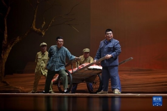 8月29日,演員在現(xiàn)代評劇《沙海情》中表演。