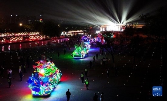唐大明宮是盛唐時期享有盛名的宮殿群,有著“千宮之宮”的美譽。國慶期間,古風演藝、華服大秀、曲藝匯演、彩車巡游等一系列活動在大明宮國家遺址公園持續(xù)上演。夜幕之下,盛唐文化與現代時尚在此相映生輝,吸引市民游客前來參觀打卡。新華社記者 劉瀟 攝