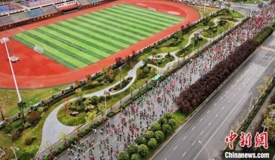 2023安康半程馬拉松賽5日鳴槍開(kāi)跑。 李鵬 攝