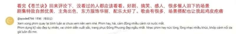 2023年前后,網(wǎng)劇《點(diǎn)燃我,溫暖你》和《長(zhǎng)月?tīng)a明》發(fā)行至越南,迅速占據(jù)Vieon等越南本地視頻平臺(tái)首位。越南觀眾在評(píng)論區(qū)內(nèi)毫不吝嗇自己的喜愛(ài):“我已經(jīng)看了第二遍,每次都會(huì)哭。”“它有驚人的演員陣容、服裝、風(fēng)景,簡(jiǎn)直太完美了!”