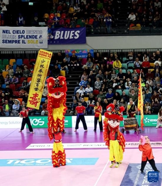 近日,為慶祝中國龍年春節(jié),意大利斯坎迪奇排球俱樂部在比賽局間休息時(shí)間為現(xiàn)場觀眾安排了精彩的舞龍舞獅表演。該舞龍舞獅表演隊(duì)由意大利當(dāng)?shù)氐闹袊Ψ驉酆谜呓M成。