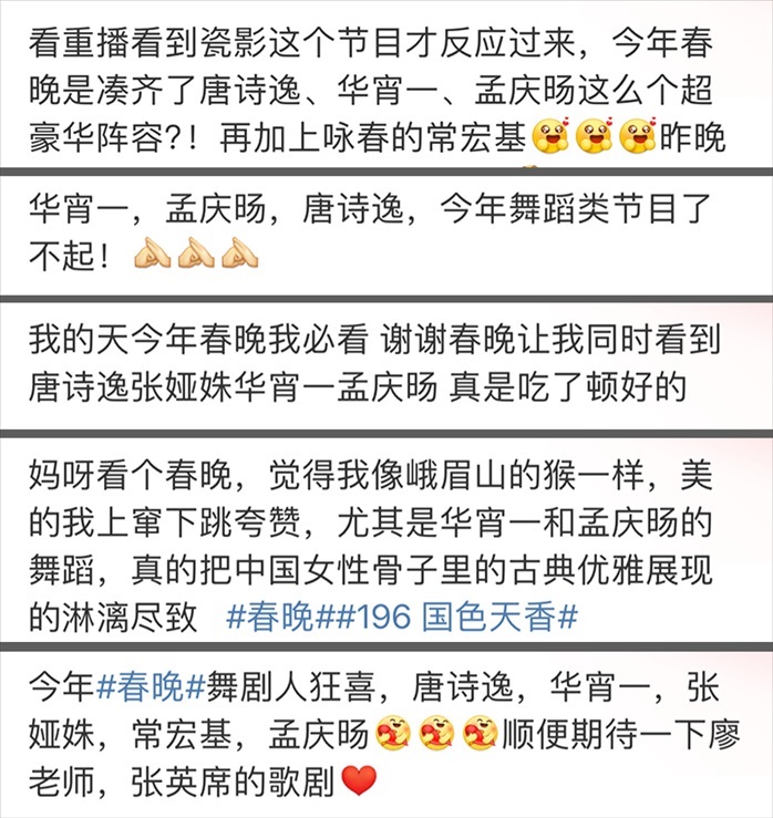 舞蹈迷們發(fā)現(xiàn),今年的春晚舞蹈節(jié)目配置太高,能聚起如此眾多現(xiàn)役頂尖舞蹈家的,也就只有春晚的舞臺(tái)了。但舞蹈節(jié)目的成功除了有頂尖舞者的才華,最重要的,還有創(chuàng)作者的誠(chéng)懇。