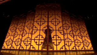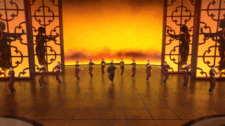 《詠春》來(lái)自舞劇《詠春》選段,已經(jīng)上演了百場(chǎng),但在春晚是個(gè)特別的版本。為了創(chuàng)造出更加意蘊(yùn)豐富的想象空間,總臺(tái)臺(tái)長(zhǎng)慎海雄在推薦這個(gè)舞劇片段時(shí),提出了幾個(gè)建議,包括演員服裝從黑色的香云紗改為絳紅色,男女主角之間的關(guān)系要從男主角一一過(guò)招“大敗”女主角改為相互切磋武藝,開(kāi)場(chǎng)以男主角的武術(shù)剪影來(lái)增強(qiáng)吸引力,通過(guò)使用剪影效果來(lái)展現(xiàn)“葉問(wèn)”的出場(chǎng)。當(dāng)燈光亮起,窗欞上“詠春拳”三個(gè)書(shū)法大字淡去,“葉問(wèn)”的剪影如同舞動(dòng)的水墨畫(huà)一般,隨即演員閃身舞出屏風(fēng),影子與真身共舞。由虛入實(shí),由平面到立體,“剪影”的設(shè)計(jì)讓短短半分鐘的獨(dú)舞大大增加了層次感和觀賞性,為空曠的舞臺(tái)創(chuàng)造出一個(gè)“頂天立地”的葉問(wèn)之影,視覺(jué)震撼瞬間放大,堪稱(chēng)畫(huà)龍點(diǎn)睛之筆。