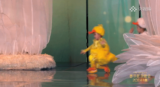 每年春晚都少不了兒童節(jié)目,導(dǎo)演組堅(jiān)持兒童舞蹈要從孩子的眼睛看世界,必須符合孩子身體的表達(dá)。這些“小天鵝們”正是來(lái)自駱賓王的家鄉(xiāng)義烏,他們用自己的理解展現(xiàn)了《詠鵝》中“白鵝戲水圖”的獨(dú)特韻味。“跪游”的經(jīng)典動(dòng)作把“紅掌撥清波”刻畫(huà)得惟妙惟肖,“翹屁股”更是萌翻了觀眾,左搖右擺的“矮子步”還是來(lái)自孩子們的鬼馬“創(chuàng)作”,整個(gè)舞蹈充滿了童趣純真。