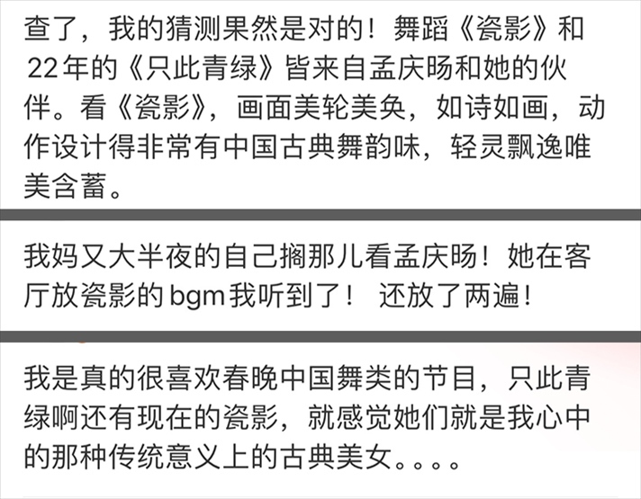 我們期待,未來(lái)的春晚會(huì)有更多體現(xiàn)中國(guó)特色、中國(guó)風(fēng)格、中國(guó)氣派的舞蹈作品涌現(xiàn),持續(xù)打動(dòng)我們,驚艷我們,滋潤(rùn)我們。